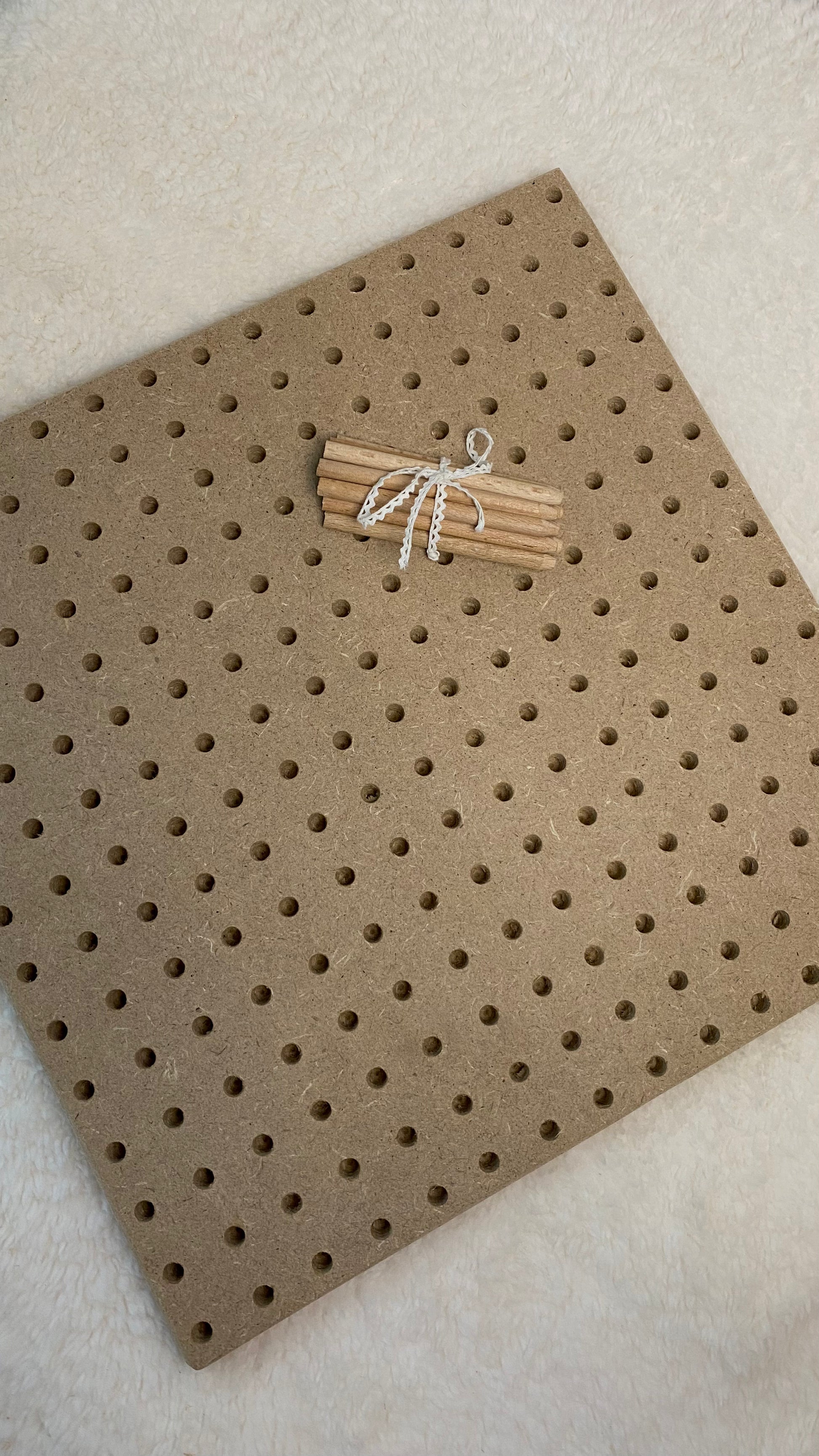 Bloquez vos carrés en les déposant sur votre planche et épinglez-les à l'aide des batônnets en bois.