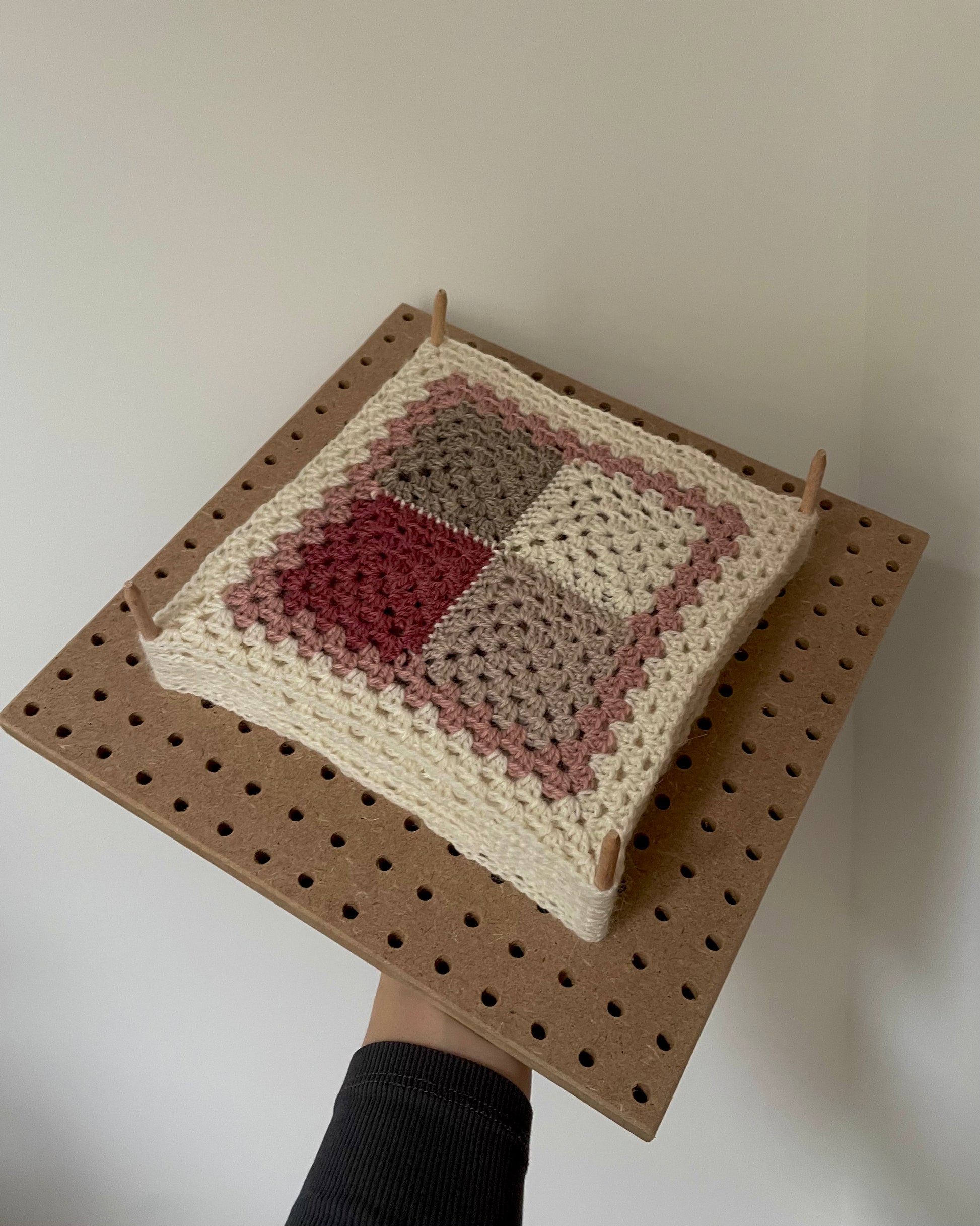 La planche de blocage pour granny square La Boutique Bo'M est l'outil parfait pour donner une belle forme à vos carrés granny.